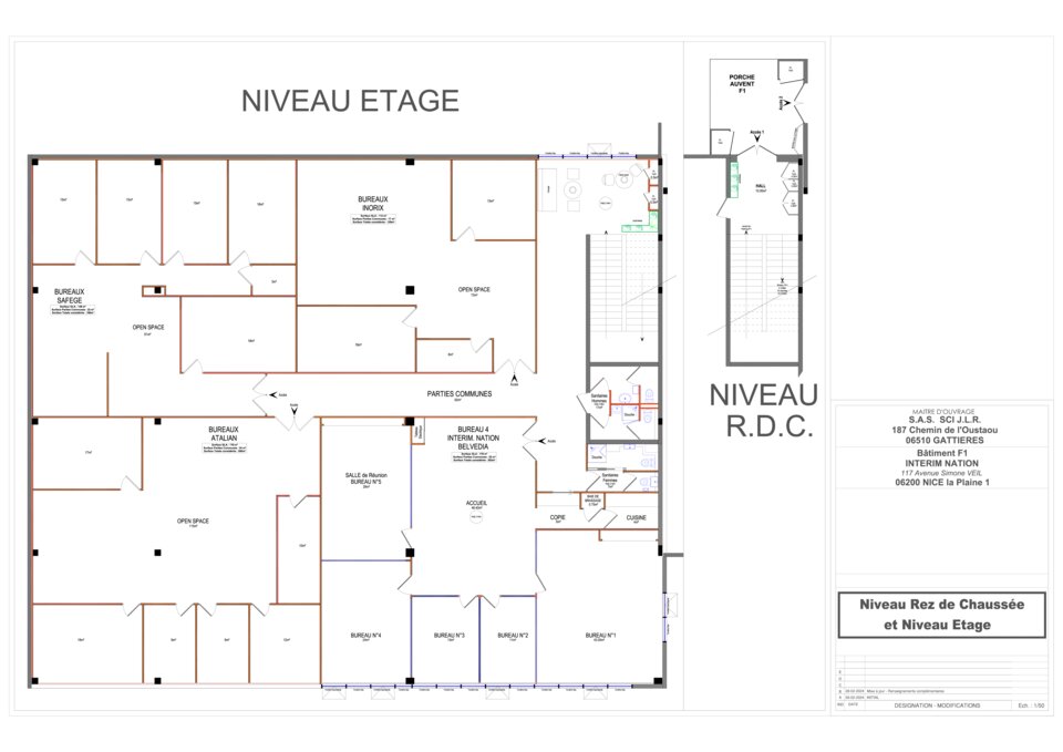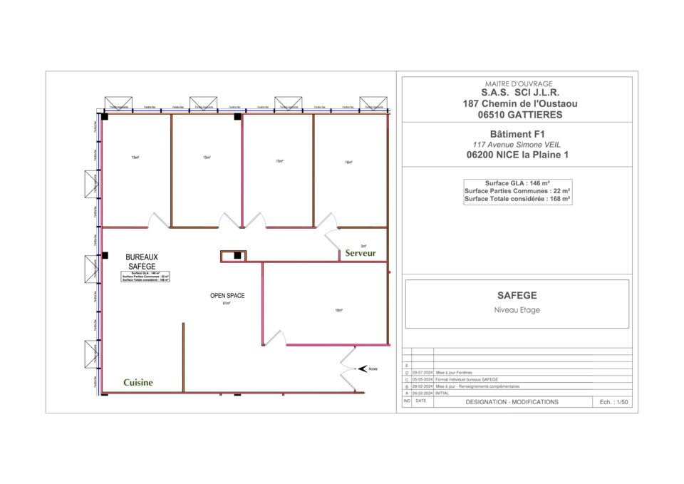 Bureaux à louer à NICE, d'une superficie de 168m2 + 6m2 de stockage en sous-sol. Situé au premier étage.