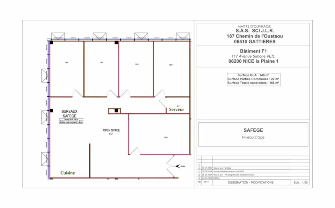 BureauxBureaux à louer à NICE, d’une superficie de 168m2 + 6m2 de stockage en sous-sol. Situé au premier étage.