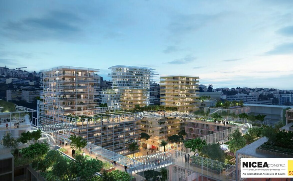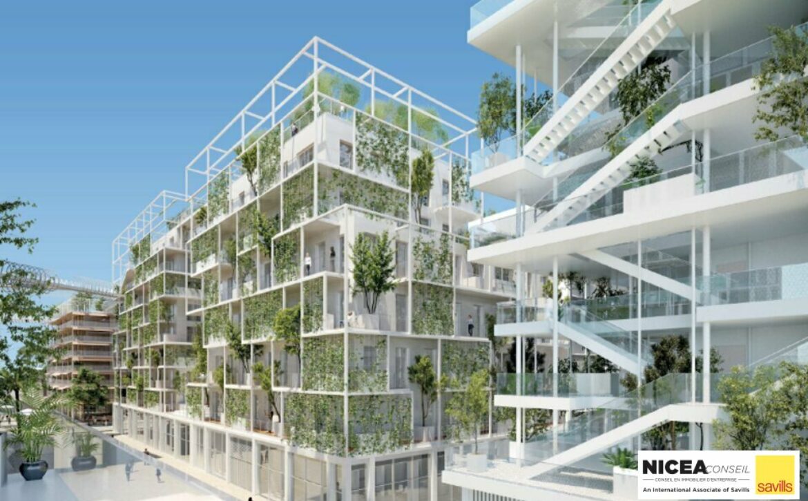 BureauxImmeuble de bureaux neuf indépendant À LOUER à NICE avec parkings et terrasses.