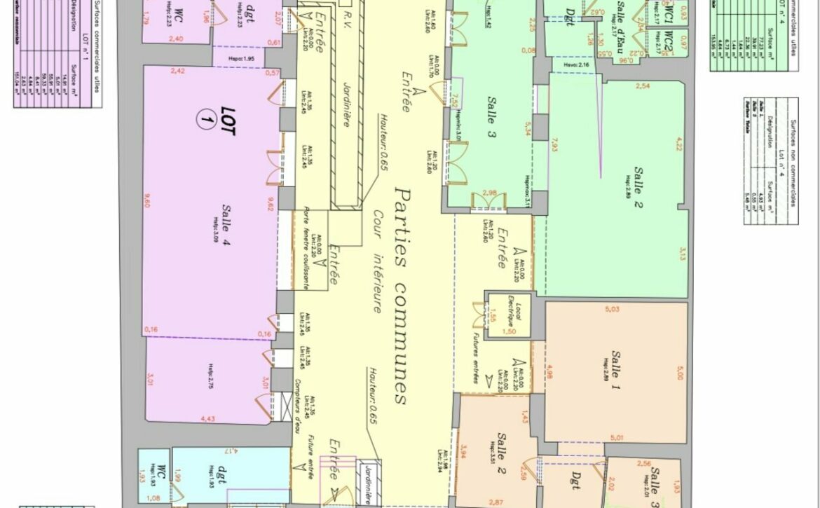 RDC : 607 m2 (charge d'exploitation 500 kg/m2)Mezzanine : 332 m2 nets avec rampe véhicules (charge