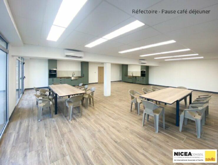 Prestations parties communes : WC PMR, douches H/F, terrasse, réfectoire.