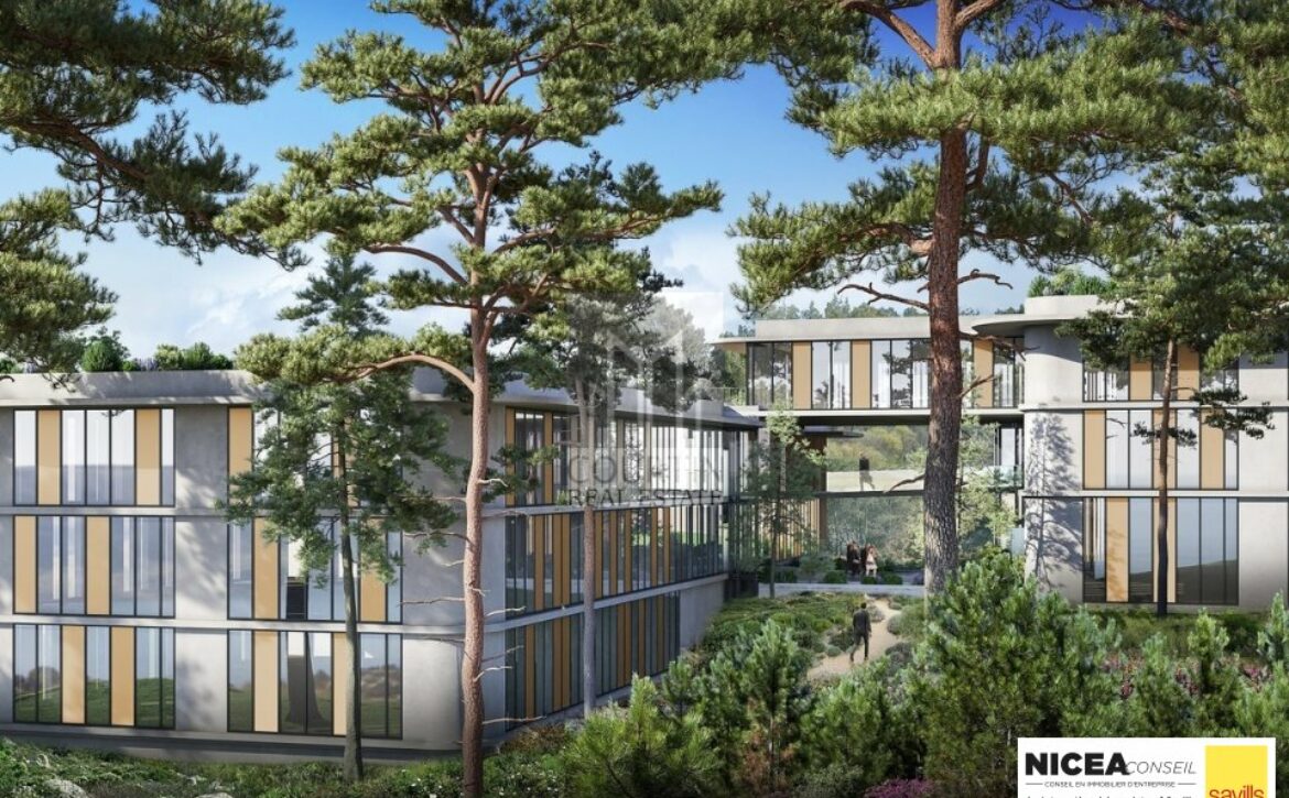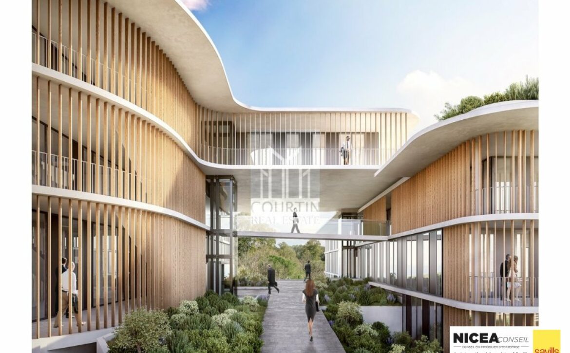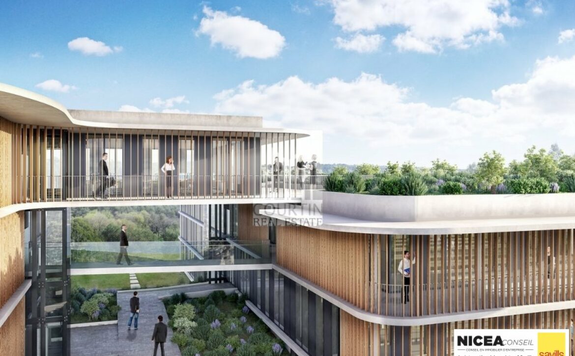 BureauxDeux immeubles neufs de trois niveaux de bureaux sur trois niveaux de sous-sol, connectés par une passerelle, situés à l’entrée n°2 de Sophia-Antipolis, angle route du Parc et Route des Lucioles.