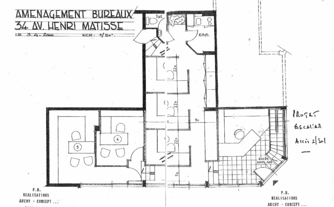 Bureaux à vendre en rez-de-chaussée, d’une superficie approximative de 108m2 avec deux box et environ 50m2 d’archives en sous-sol.